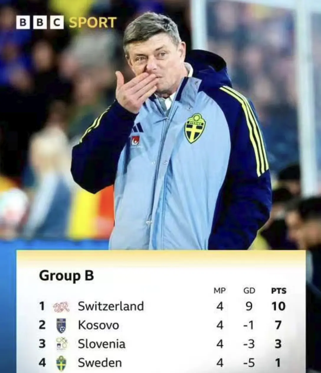 意大利队现在还未确定去参加附加赛,而拥有伊萨克、哲凯赖什的瑞典已经在准备附加赛了。4轮世预赛战罢,瑞典2-2斯洛文尼亚,0-2、0-1被科索沃双杀,0-2瑞士。还剩2轮比赛,目前瑞典队在所在小组中排在倒数第1位,落后榜首的瑞士9分,比科索沃少6分,比斯洛文尼亚少2分。瑞典已经无法排在小组榜首位置通过世预赛直接晋级世界杯,但他们有附加赛席位。
